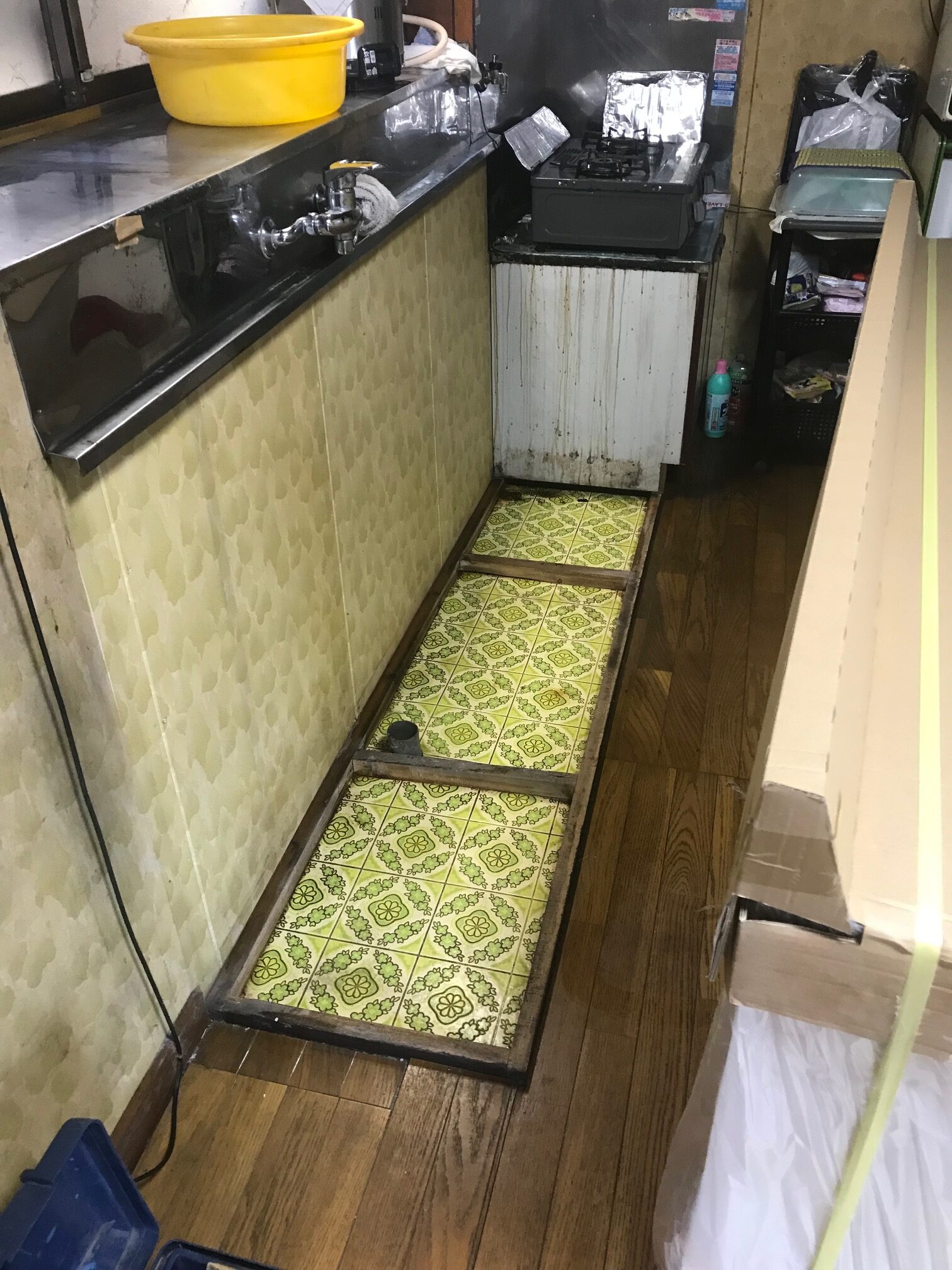 流し台が古く、排水トラップからも水漏れするので、新しい流し台に交換します👇