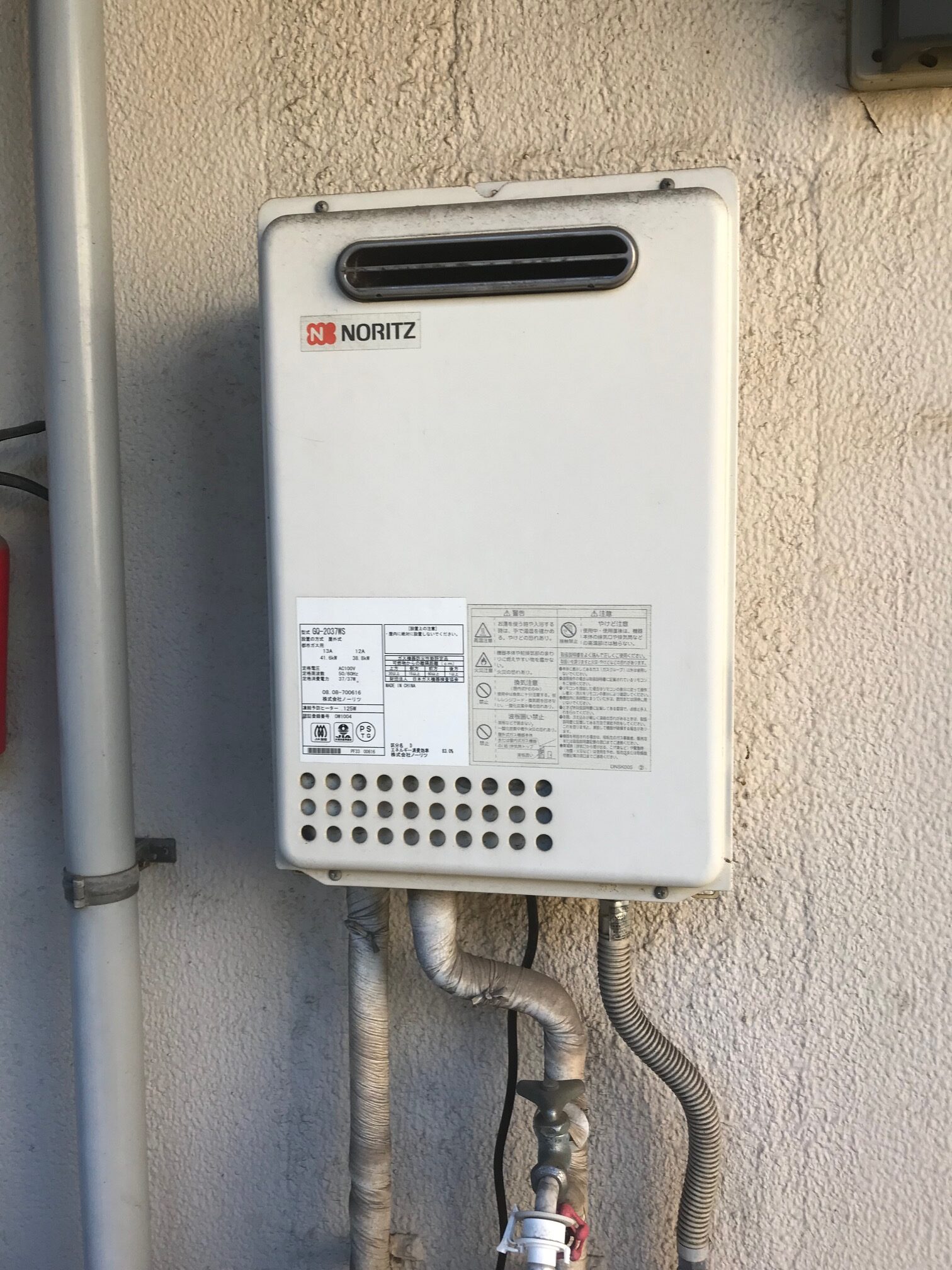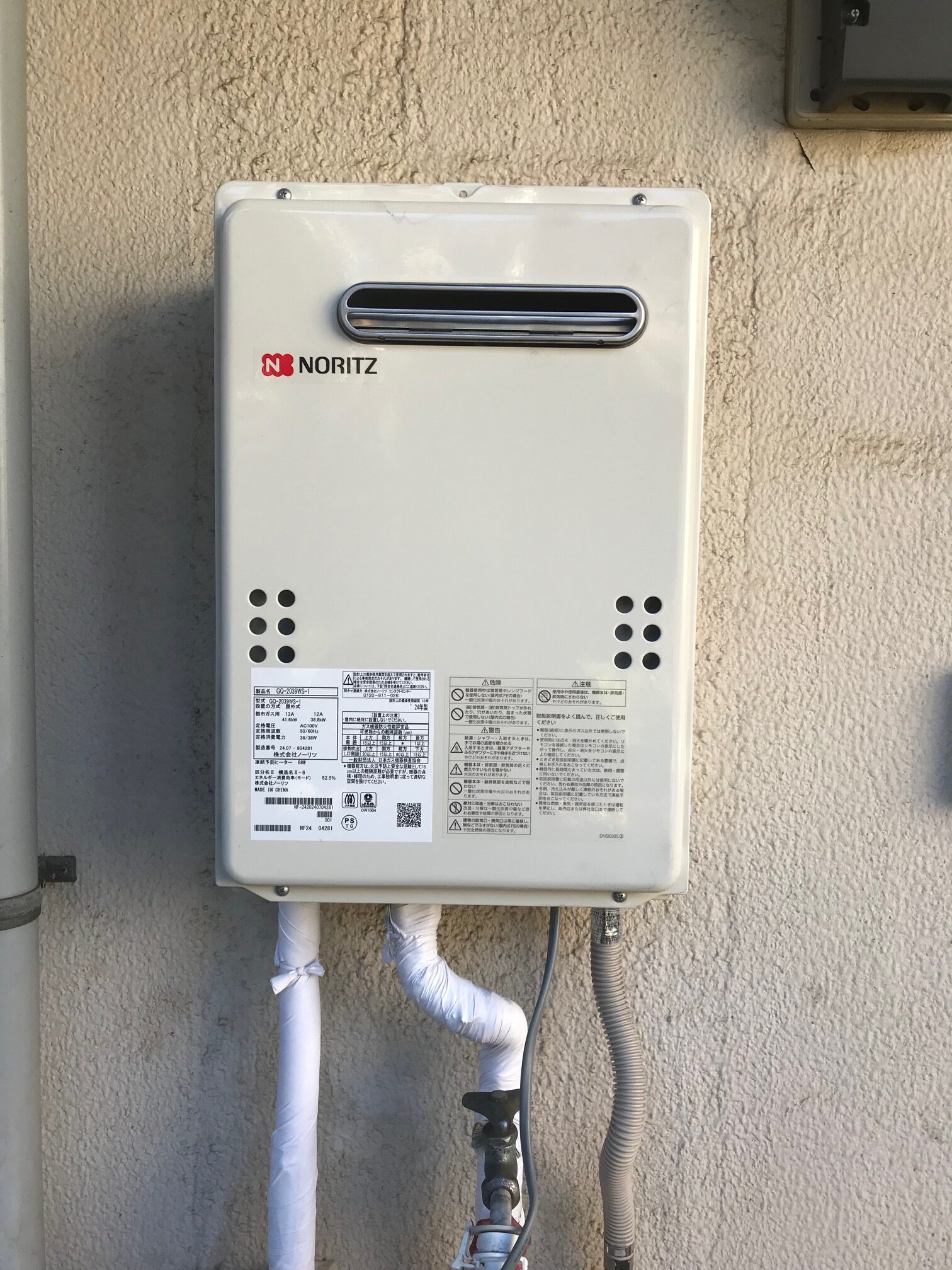 ノーリツ給湯器 GQ-2039WS-1 に交換させていただきました。