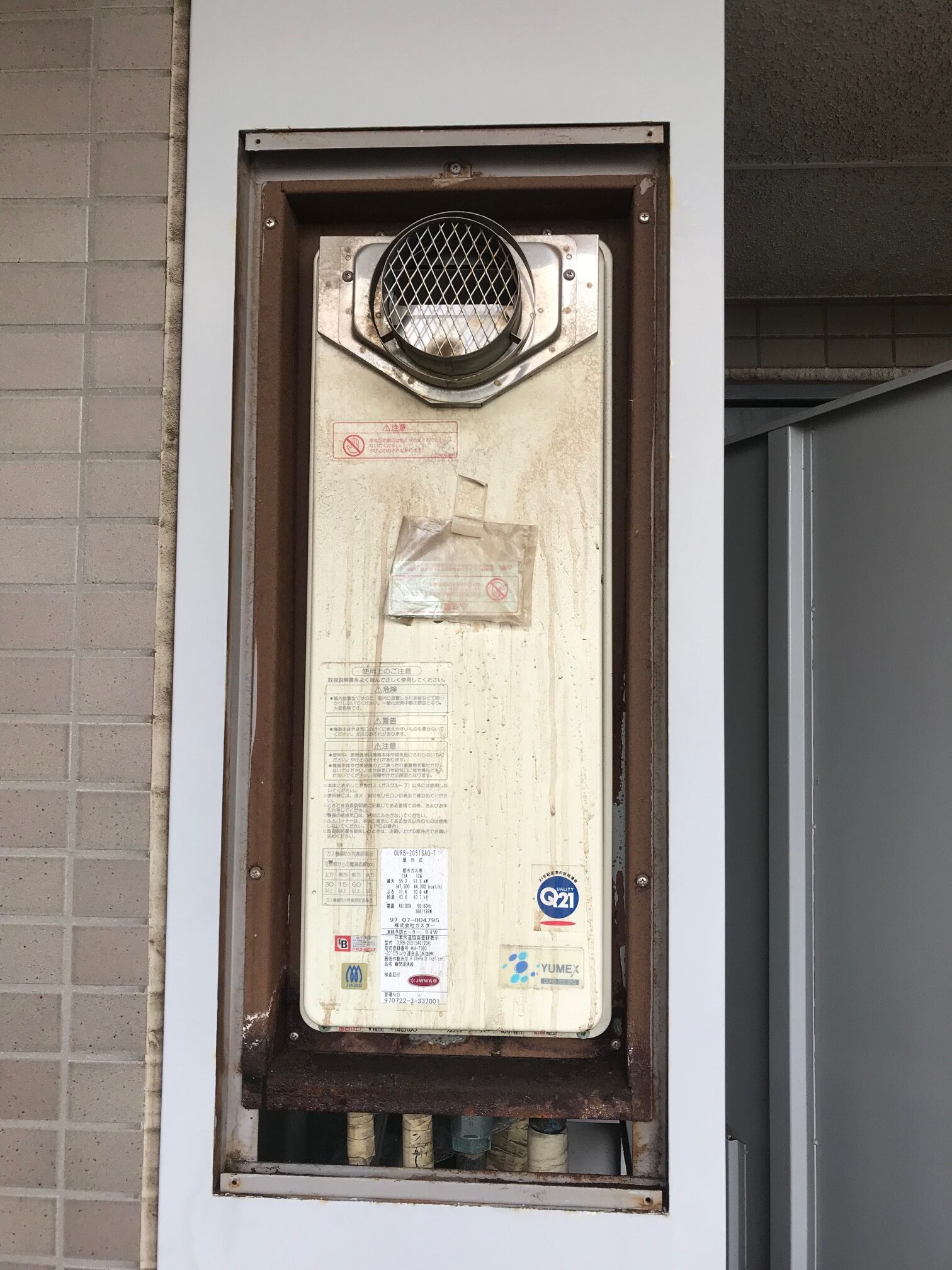 1997年製の給湯器の交換工事 長くご使用いただきました。
