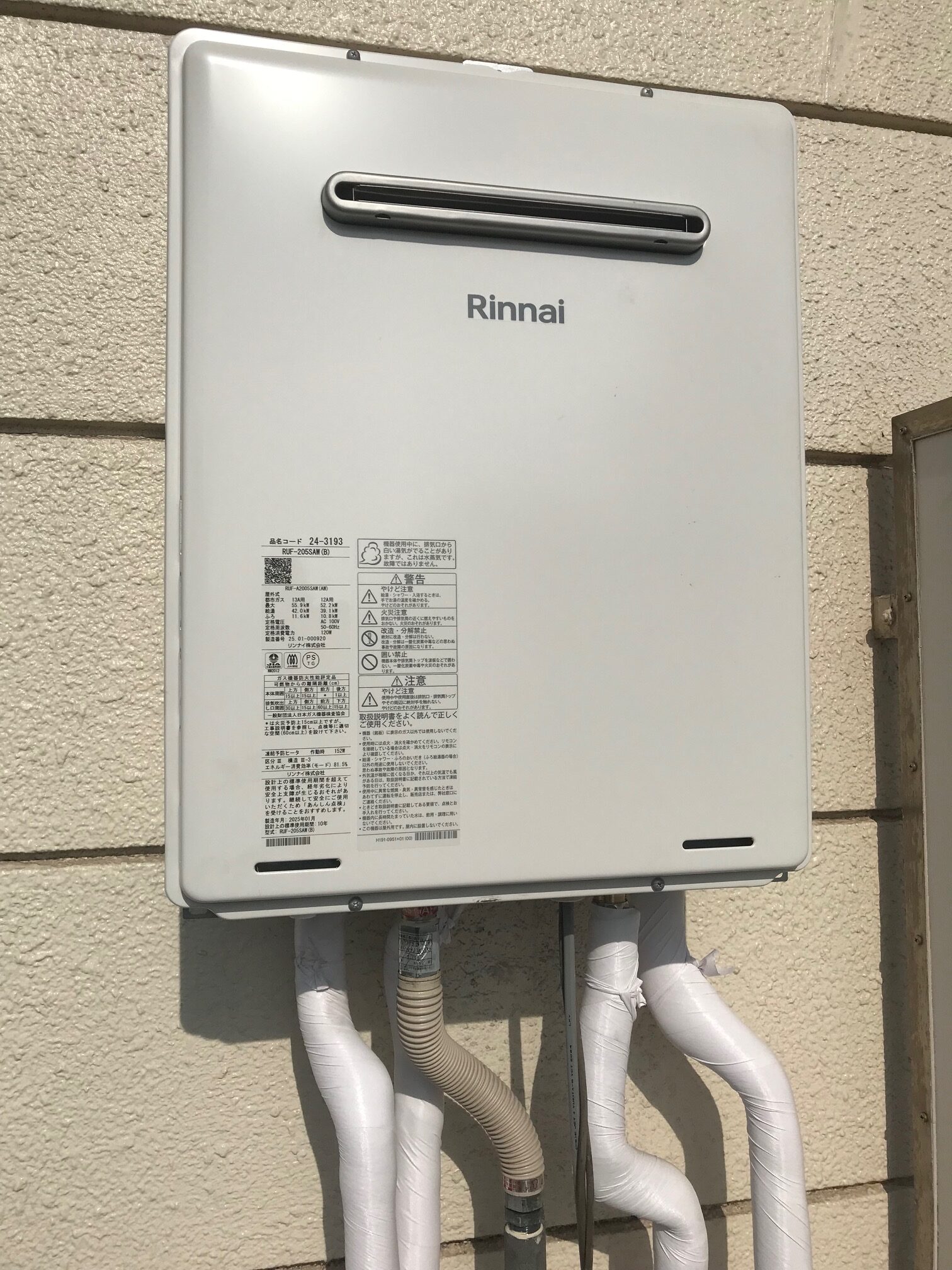 ノーリツ給湯器 GT-1628SAWX から リンナイ給湯器 RUF-2005SAW に交換させていただきました。