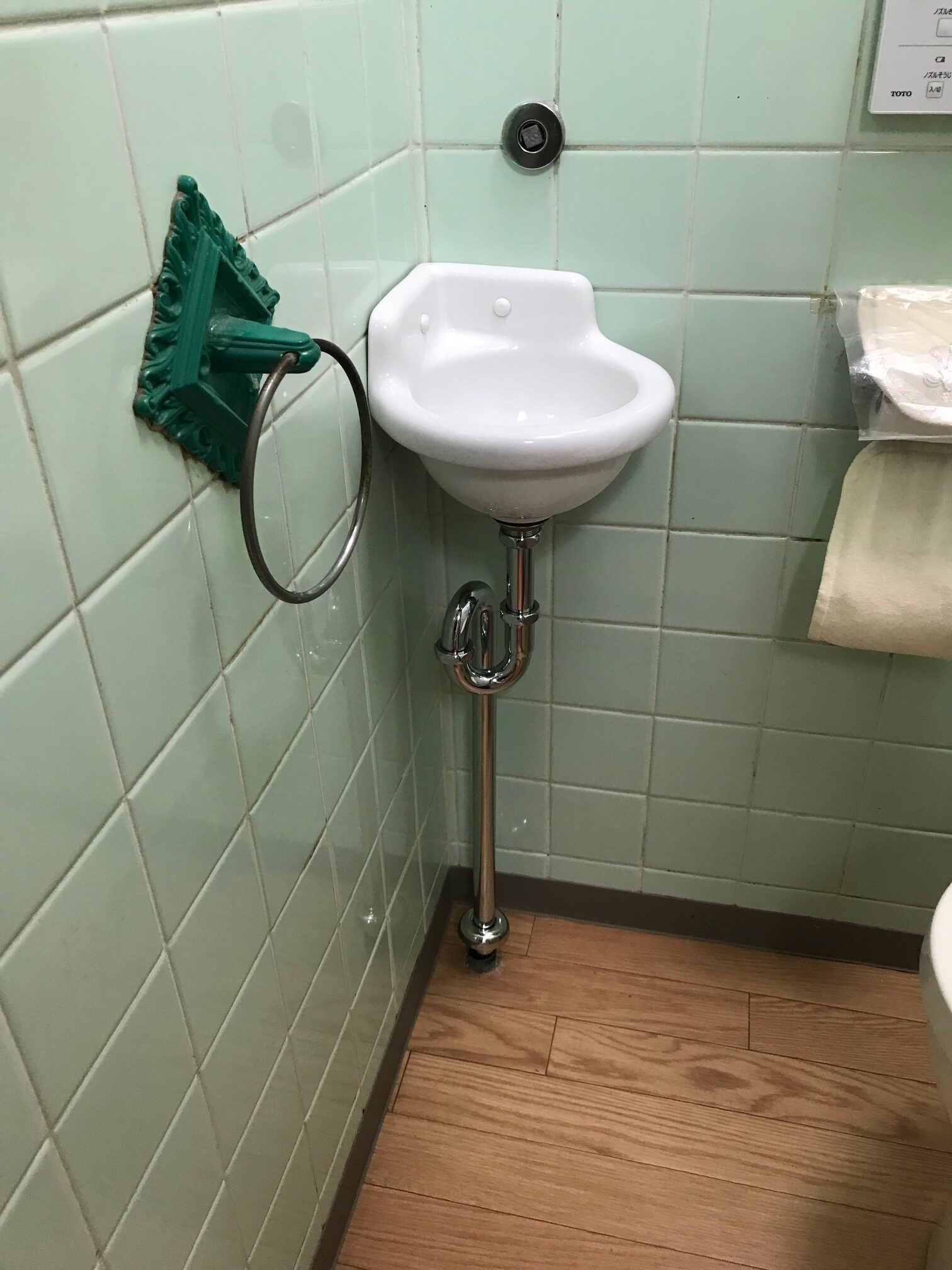 洗面器、蛇口、タオル掛け取り付けさせていただきました。
